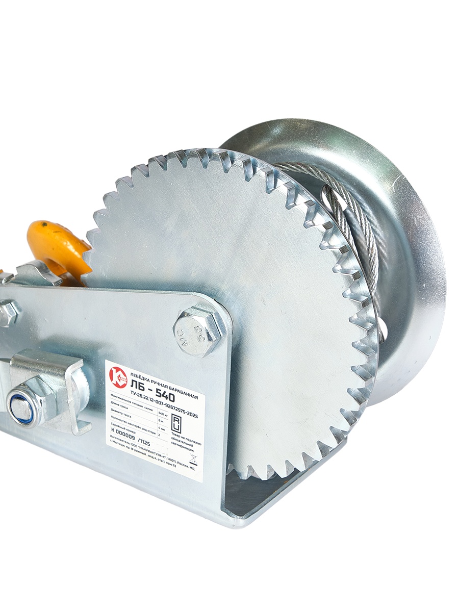 Лебёдка ручная барабанного типа Калибр ЛБ-540 предназначена для горизонтального перемещения груза, а также для закрепления и удержания груза в фиксированном положении.